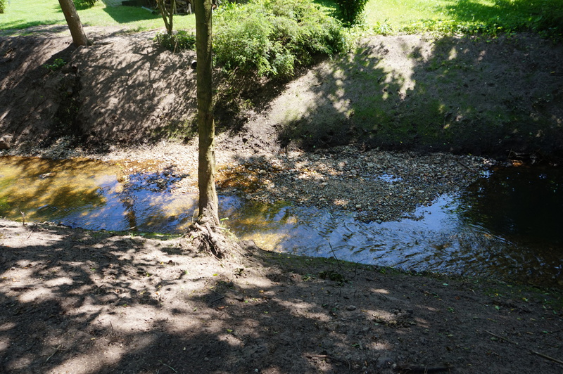 Die Hunte- Wasseracht hat im Oberlauf des Altonaer Mühlbachs eine künstliche Sohlschwelle entfernt, und dafür drei Kiesbänke mit Strömungslenkern und Störsteinen eingebaut.