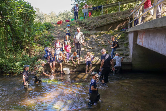 20 Kinder im Alter zwischen 7 und 12 Jahren trafen sich am 18.08.2018 an der Visbeker Aue. Der Fischereiverein konnte hier zeigen, dass es sich hier um ein natürliches Gewässer mit hoher Qualität handelt.